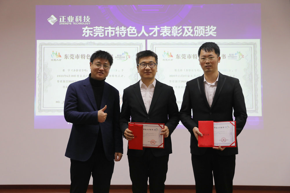 本次會議對2024年度技術研發、項目管理等方麵表現優異的項目團隊及獲得東莞市特色人才的優秀個人表彰。